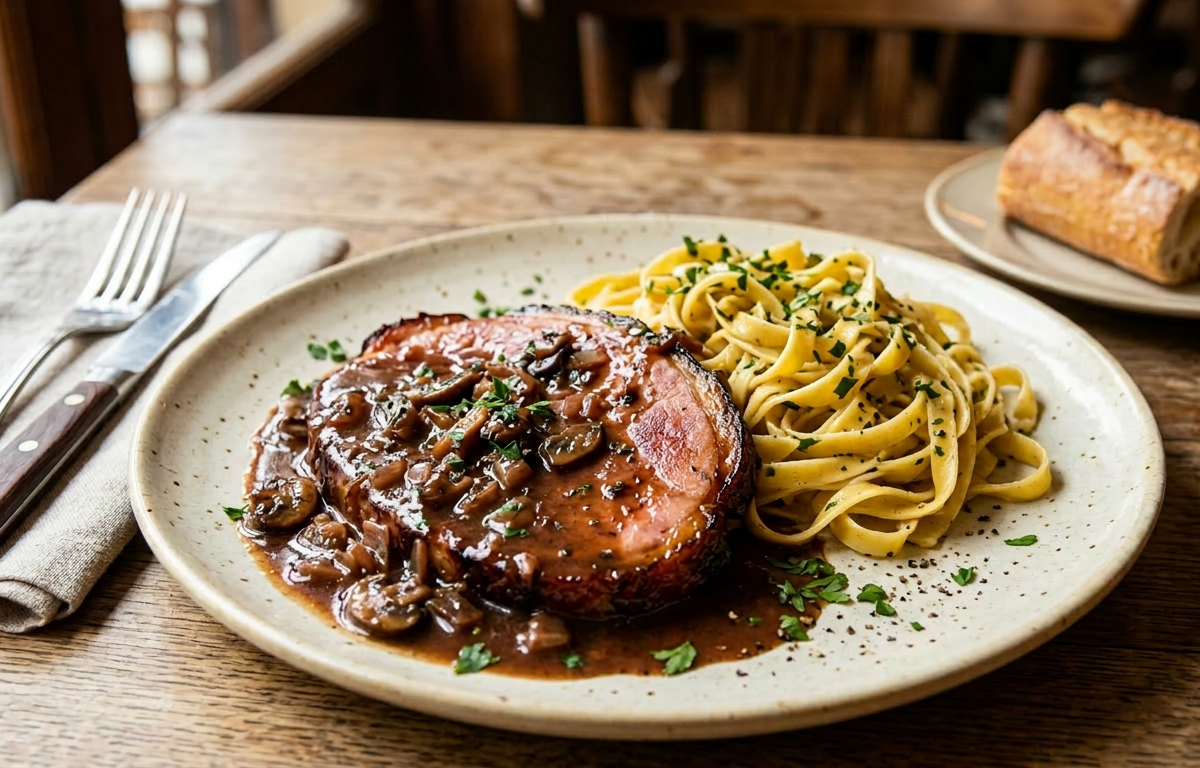 Jeudi 19 Mars - Jambon braisé* sauce madère & pâtes ou poêlée de légumes